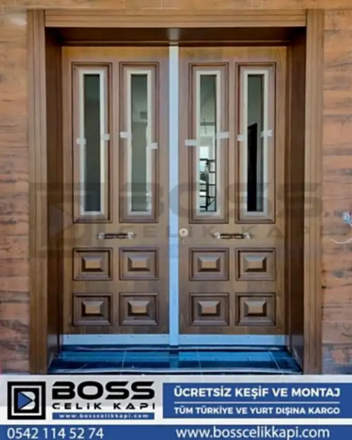 Boss Çelik Kapı, apartman giriş kapılarında çelik gövde kullanarak, maksimum güvenlik ve dayanıklılık sağlamaktadır. Çelik gövde üzerine uygulanan marin ahşap, kompozit ve kompakt lamine gibi farklı kaplama seçenekleri, hem estetik açıdan zengin bir görünüm sunmakta hem de yapıya uyum sağlamaktadır. Ayrıca, kompozit ve kompakt kaplamalı kapılar, yağmur, güneş ve diğer dış etkenlere karşı tam dayanıklı olup, 10 yıl garantilidir.