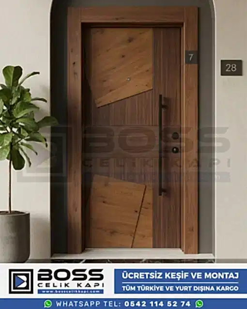 | Bu modelin ahşap kaplaması dış cephede (bina dış kapısı) kullanıma uygun mu? | Bu modelimiz, estetik ve malzeme yapısı itibarıyla öncelikli olarak apartman içi daire kapısı olarak tasarlanmıştır. Güneş, yağmur gibi dış etkenlere doğrudan maruz kalacak alanlar için farklı koruma katmanlarına sahip özel çelik kapı modelleri seçeneklerimizi önermekteyiz. |