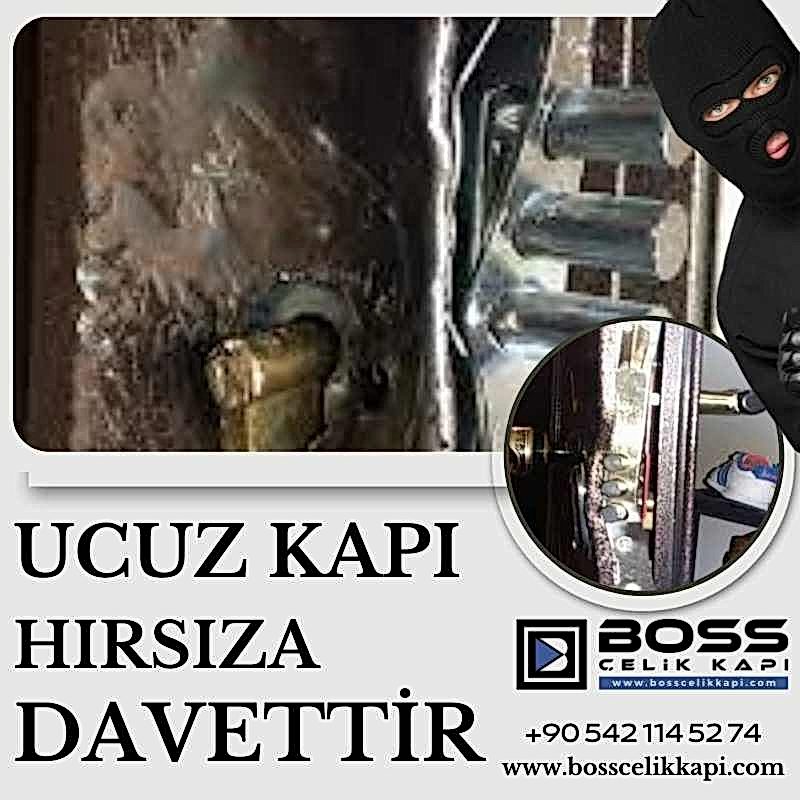 Hazır çelik kapı modelleri fabrikasyon üretim bantlarında tek bir sabit ölçüde ve seri üretim olarak üretilmektedir. Hazır çelik kapı modelleri bir diğer tanımı ile ucuz çelik kapı modelleri standart ölçülerde üretildiği için, kapının montaj yapılacağı alanı ekonomik çelik kapı modelinin ölçülerine göre ayarlamak size düşen bir görevdir. Duvar kırılması, veya en iyi ihtimalle montajı yapılan ucuz kapı nedeni ile kapı kasası ve duvar arasında boşluk oluşması muhtemeldir. Ölçü ile ilgili sıkıntıları aşabildiğiniz durumlarda ise ucuz çelik kapı modelleri sizlere düşük güvenlik sağlamaktadır, ve bu çok ciddi bir sorun olarak zaman içerisinde size dönüş yapacaktır. Ekonomik uygun fiyatlı çelik kapı modelleri genellikle düşük mukavemete sahip ince sac levhalardan üretilmektedir. Kapının kanat bölgesinde ise dış kısımda yer alan çelik kapı mobilyasını kaldırdığınızda 3 adet destek profili içerisinde strafor köpük dışında herhangi bir materyal bulunmadığı gözlenmektedir. Yine ucuz çelik kapı modelleri ucuz kilit sistemleri ile üretilmektedir. Bu nedenle Boss Çelik Kapı olarak ucuz çelik kapı veya hazır çelik kapı kullanımını oldukça sakıncalı buluyor ve müşterilerimizin uzak durmasını önemle rica ediyoruz.