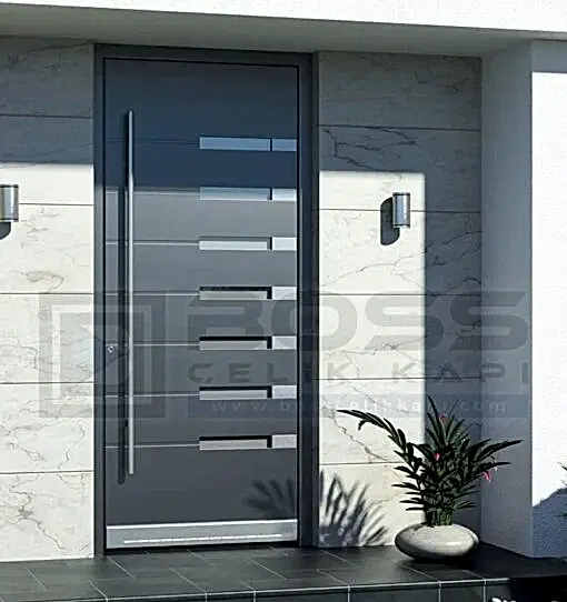 Villanızın karakterini yansıtacak bir kapı seçimi, titiz bir süreç gerektirir. Biz, Boss Çelik Kapı olarak, Villa Kapısı Modelleri Kompozit 017 ile bu süreci sizin için kolaylaştırıyoruz. Görselde gördüğünüz modern, antrasit rengi ve yatay panelli kompozit yüzey, villanıza çağdaş bir dokunuş katıyor. Uzun, dikey bir kol ve zarif bir dikey cam detayıyla tamamlanan bu tasarım, fonksiyonellik ve şıklığı bir araya getiriyor. Villa Kapısı Modelleri denince akla gelen Boss Çelik Kapı, sınırsız tasarım ve renk seçeneği sunarak her zevke ve mimari projeye uygun çözümler üretiyor. İster minimalist, ister iddialı bir görünüm isteyin, her detayı sizin için özel olarak tasarlıyoruz.